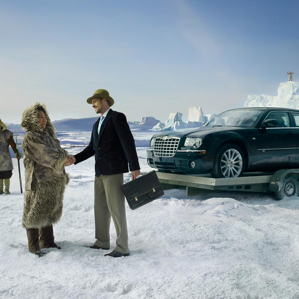 Обои Снег, Спортивное авто, Парень, шутка