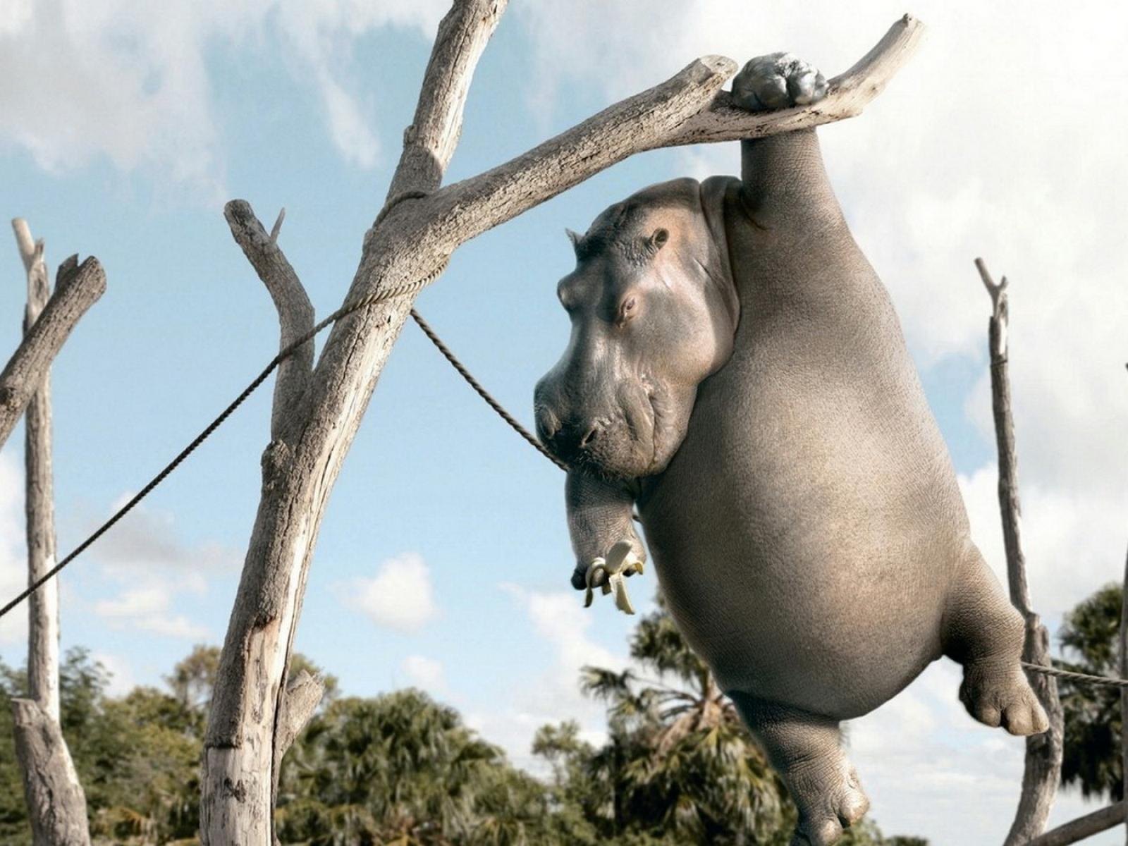 Обои Бегемот с бананом