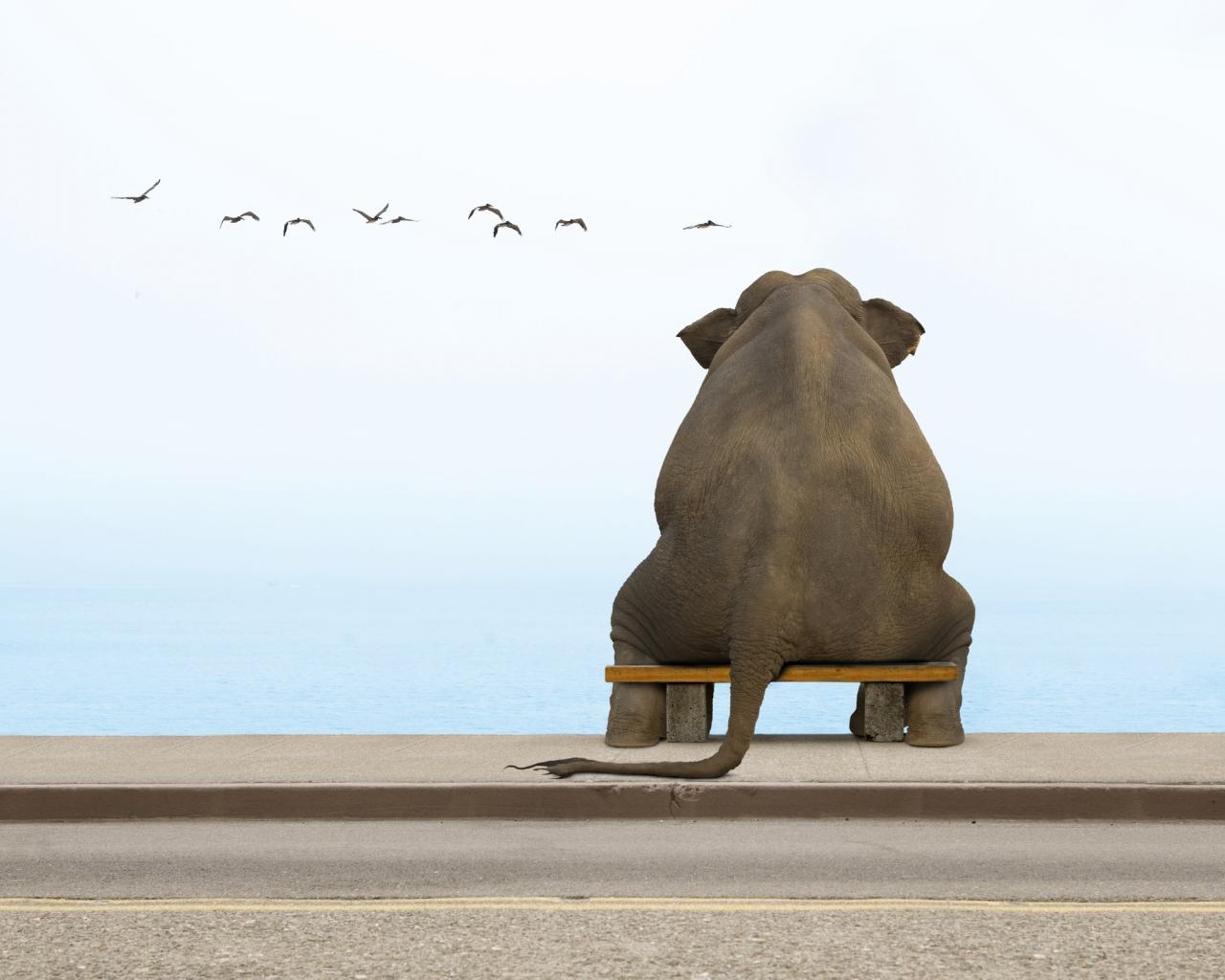 Обои Слон на скамеечке