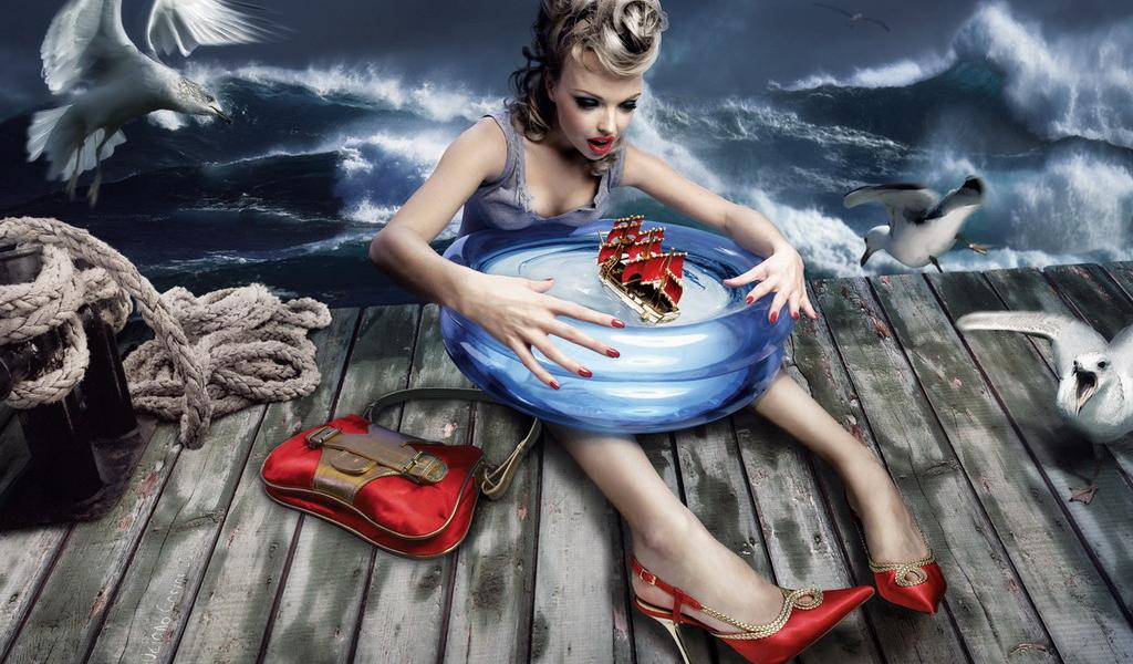 Обои Девушка и Шторм