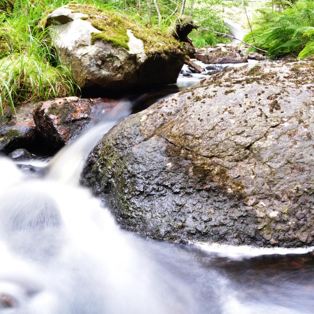 Обои Ручей среди покрытых мхом камней