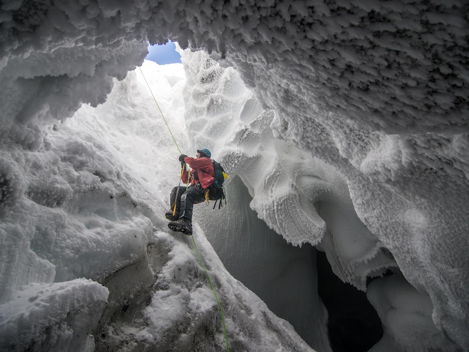 Обои Спелеолог в арктической пещере