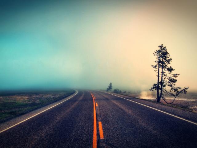 Обои Оранжевая разметка на шоссе