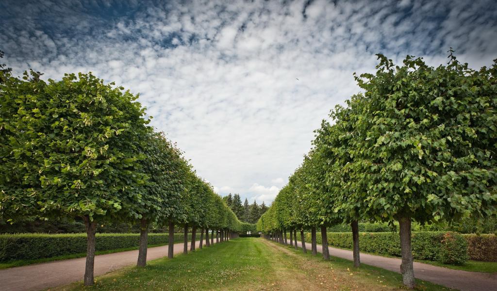 Обои Аккуратная аллея лиственных деревьев