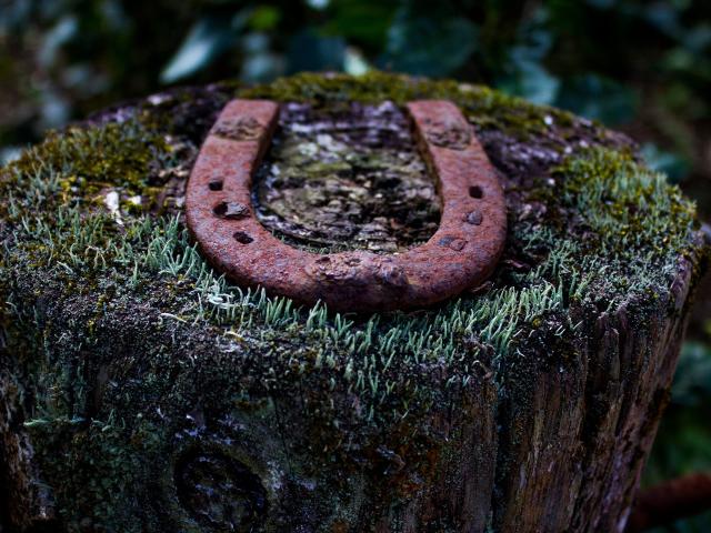 Обои Ржавая подкова на пеньке