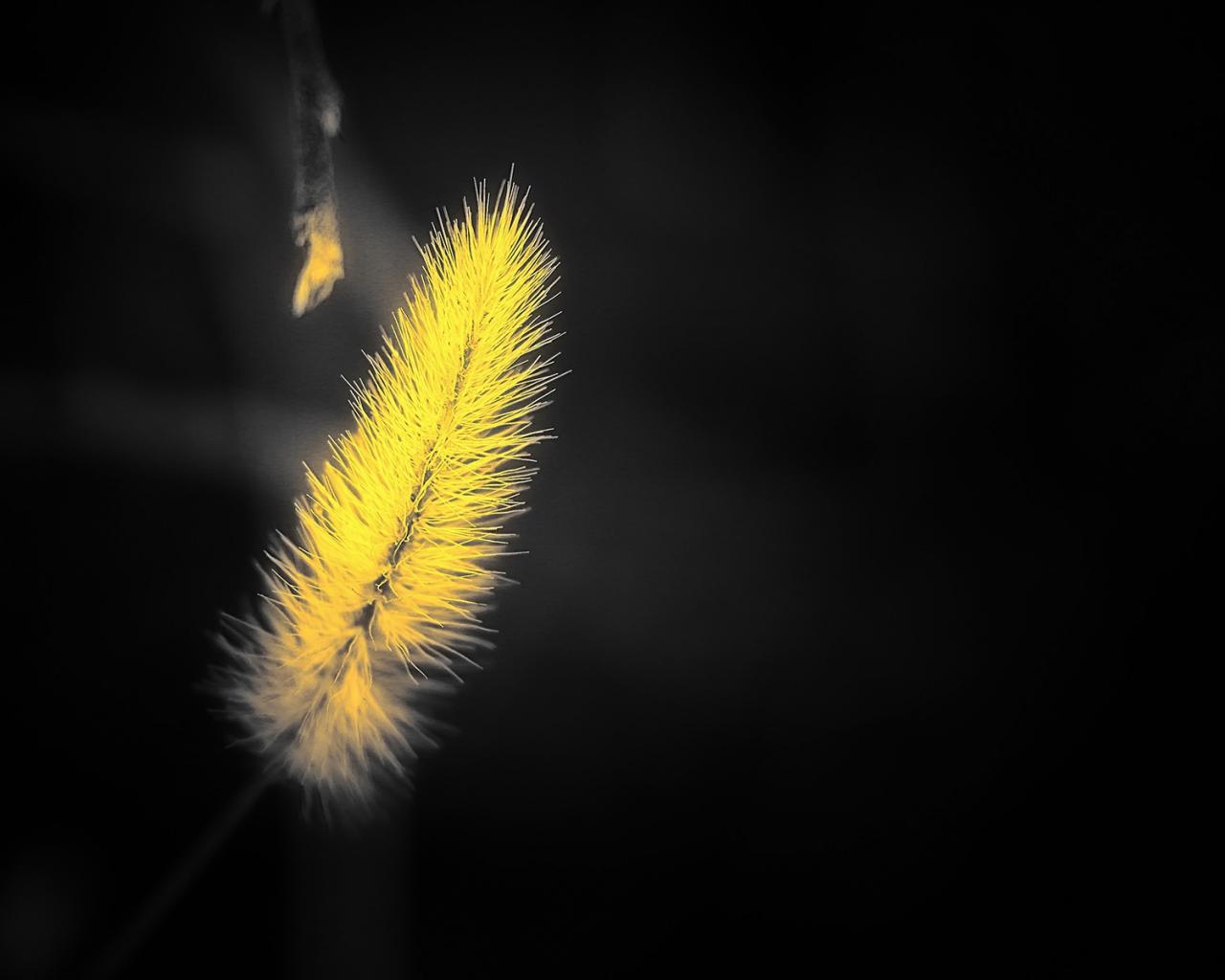 Обои Желтый мохнатый колосок на черном фоне