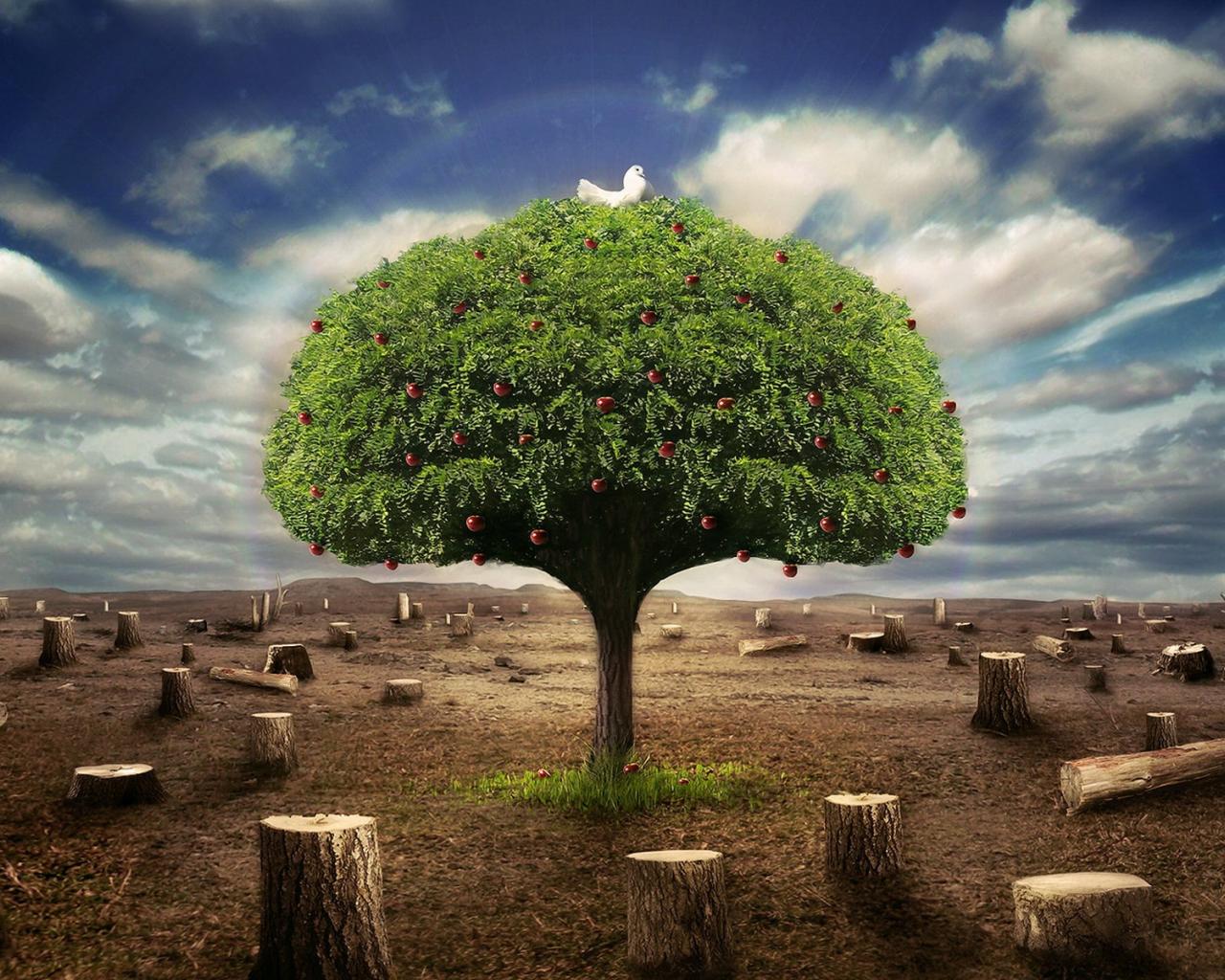 Обои Живое дерево среди пеньков