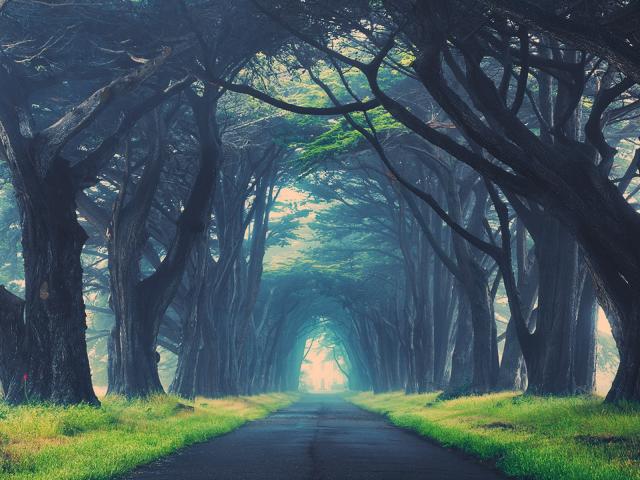 Обои Могучие деревья образуют арку над дорогой