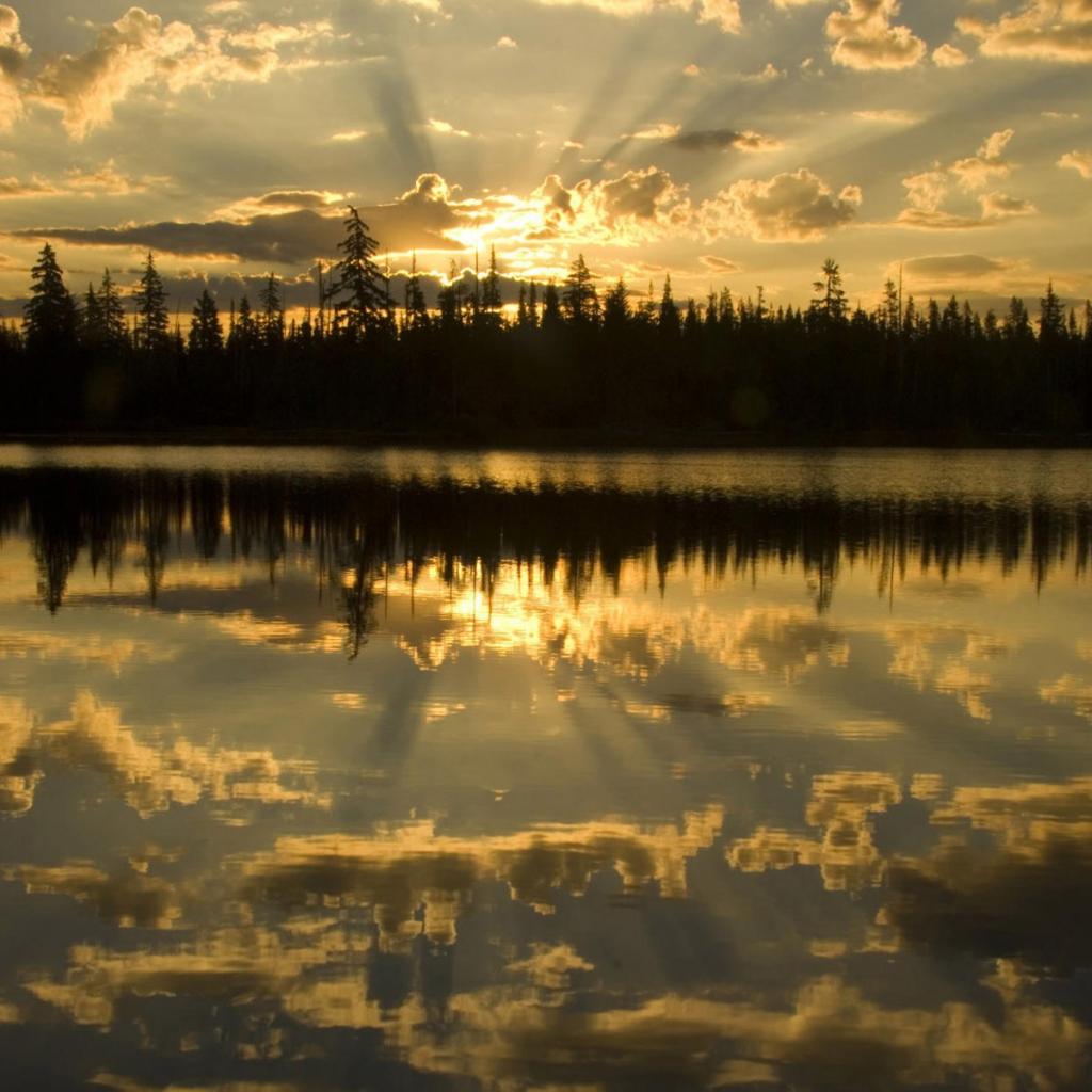 Обои Освещенные лучами солнца облака отражаются в воде