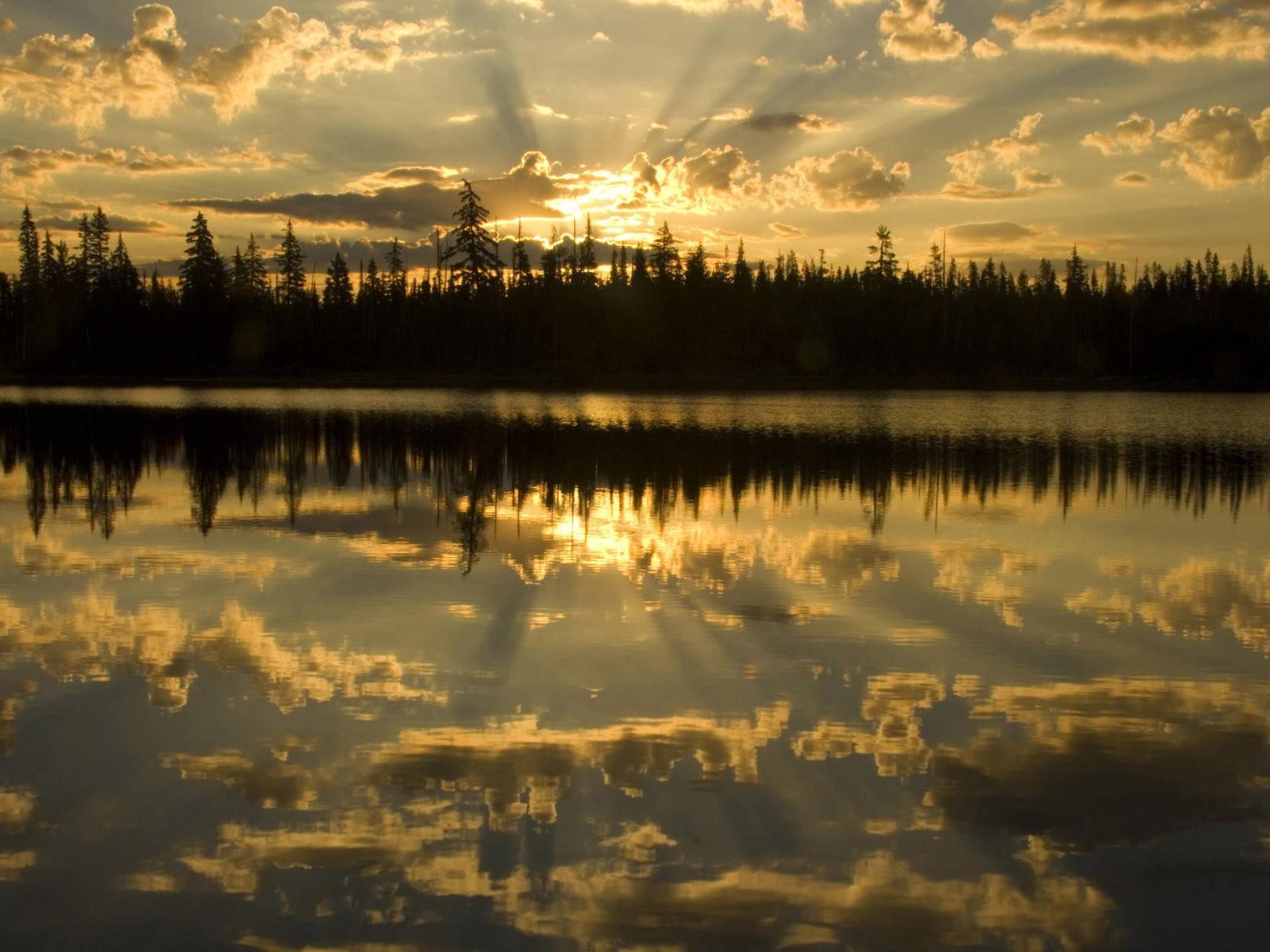 Обои Освещенные лучами солнца облака отражаются в воде