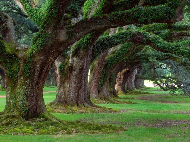 Обои Аллея старых могучих деревьев в парке