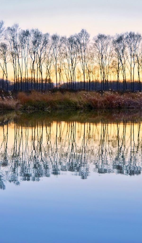 Обои Деревья без листьев отражаются в воде