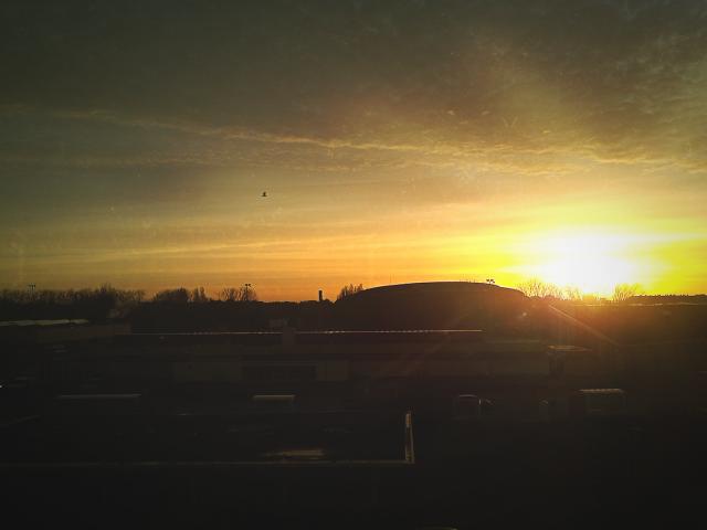 Обои Восход солнца над постройками