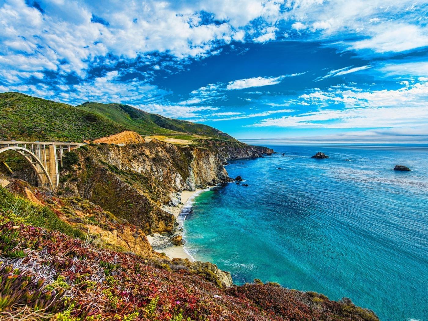 Обои Арочный мост у берега моря