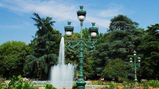 Обои Зеленый чугунный фонарь в парке