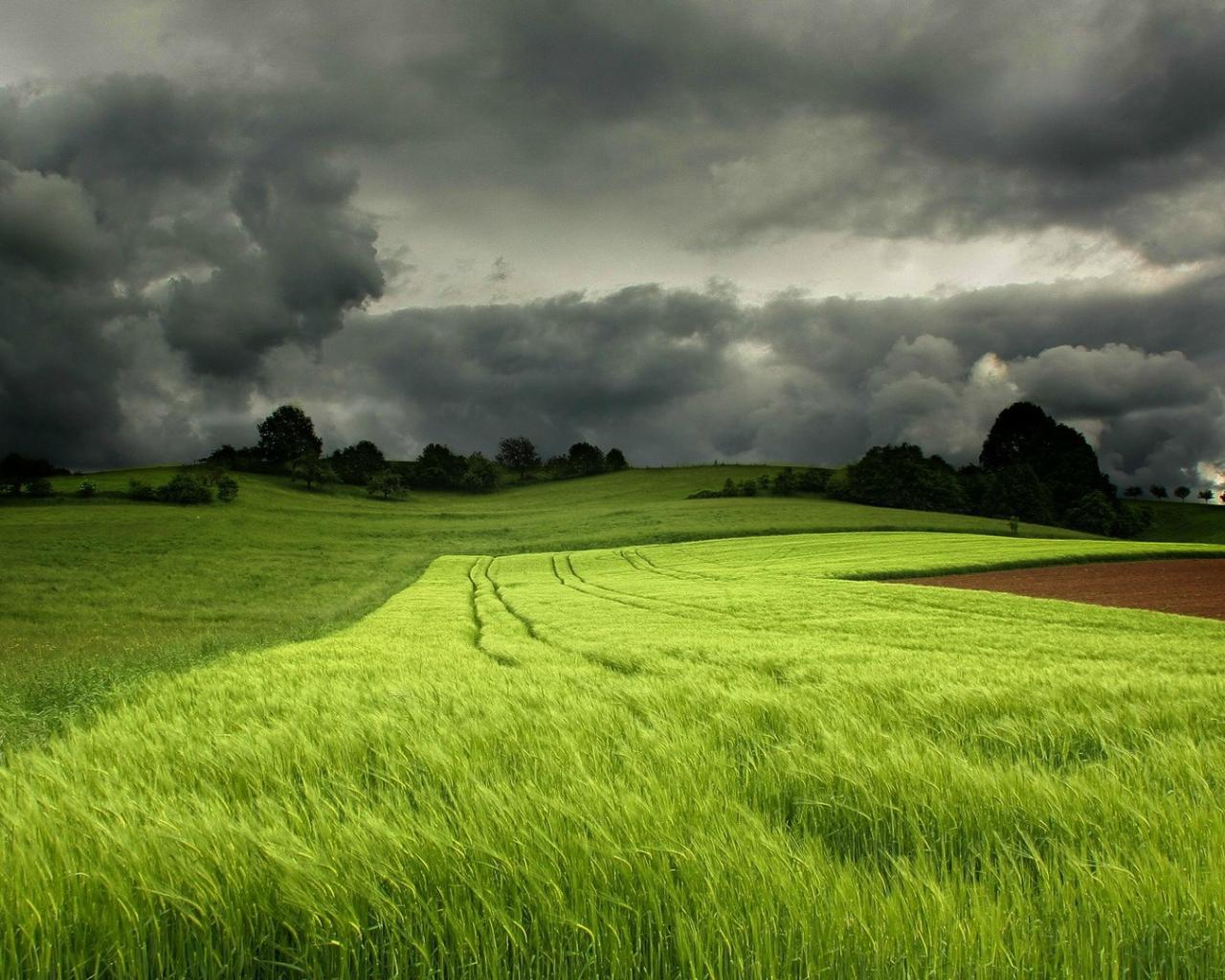 Обои Грозовые тучи над полем зеленой пшеницы