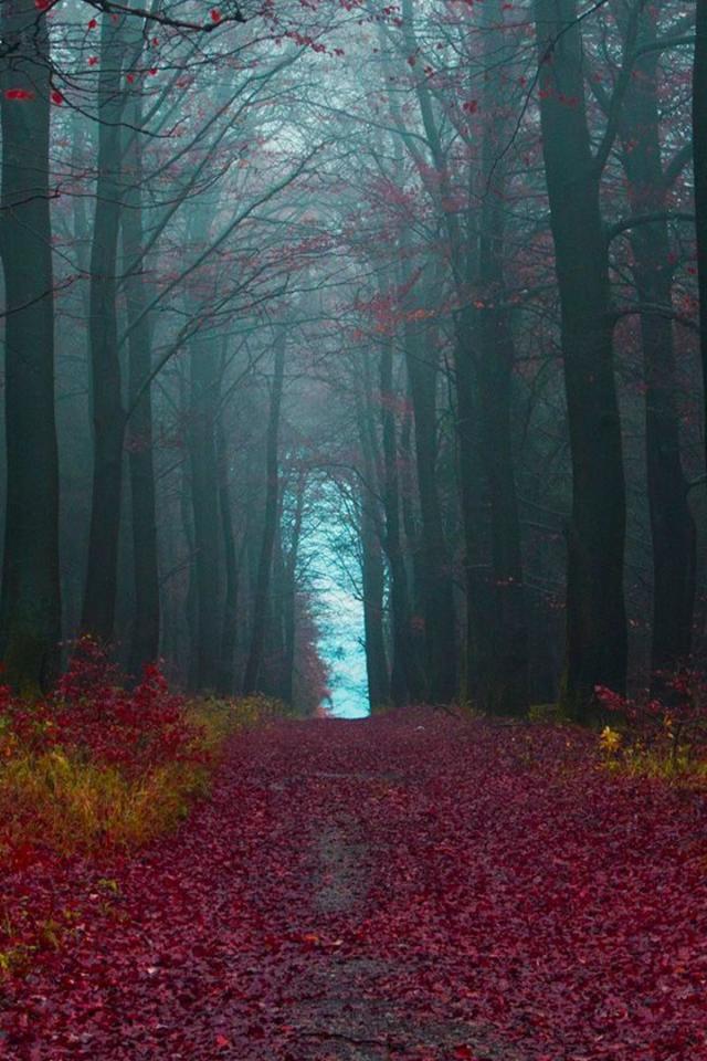 Обои Тропа в лесу покрытая красными листьями