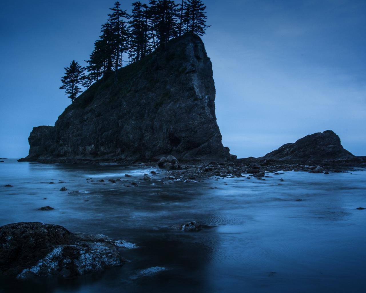 Обои Деревья на прибрежной скале