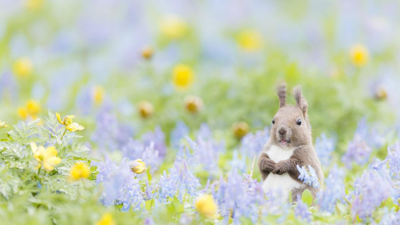 Обои Пушистик с цветочками