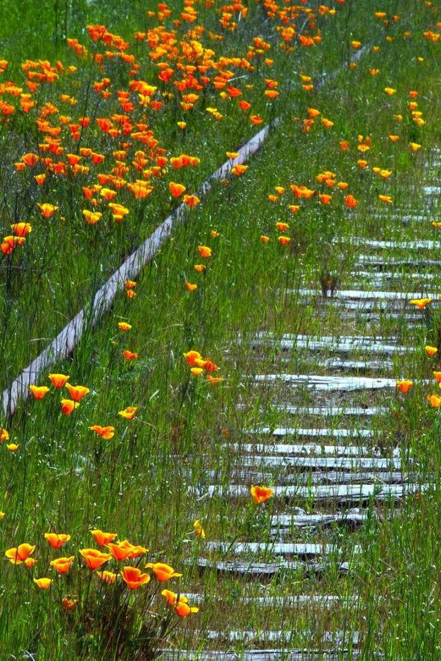 Обои Заросшая цветами старая дорога