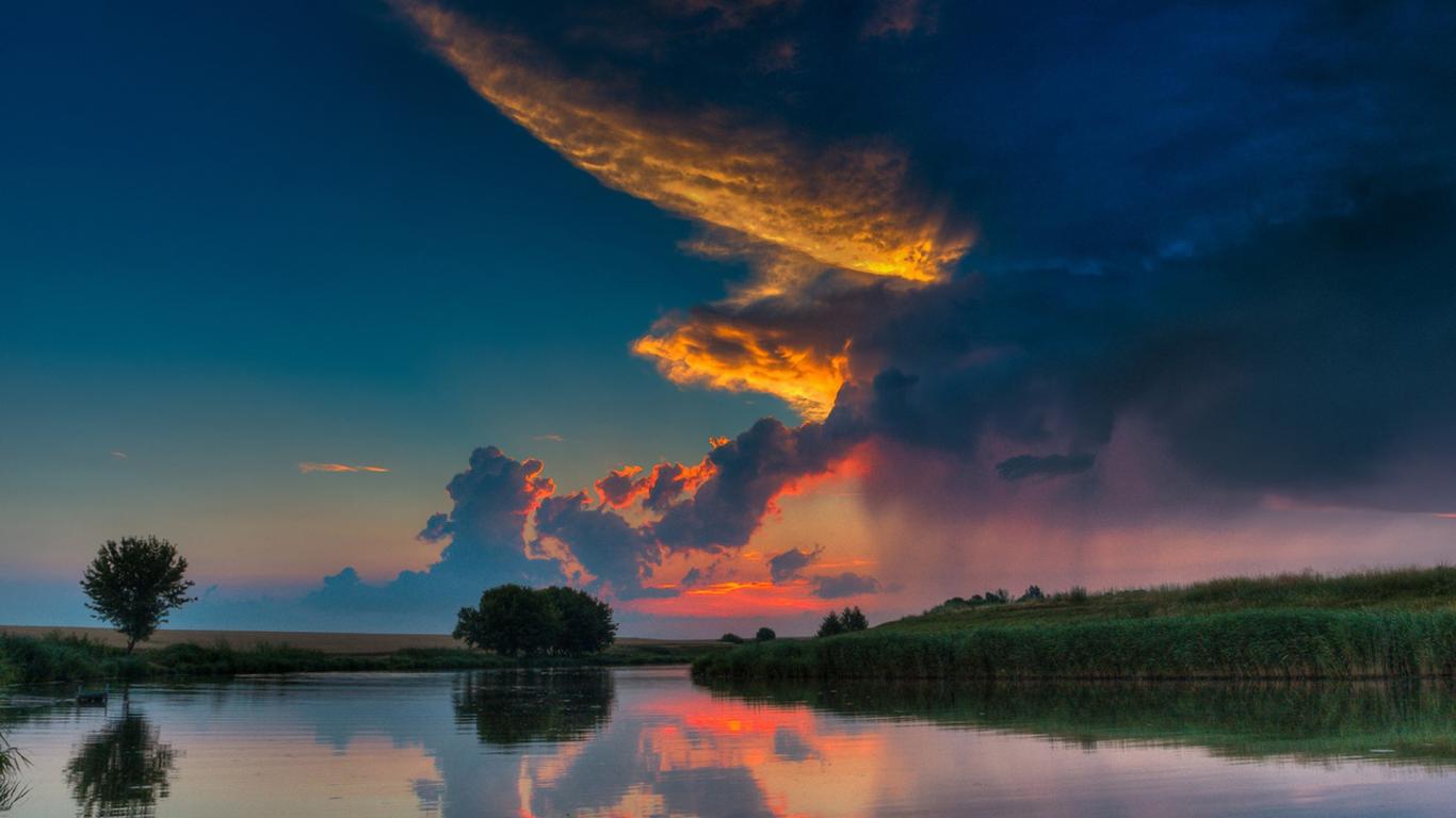 Обои Закат на фоне реки