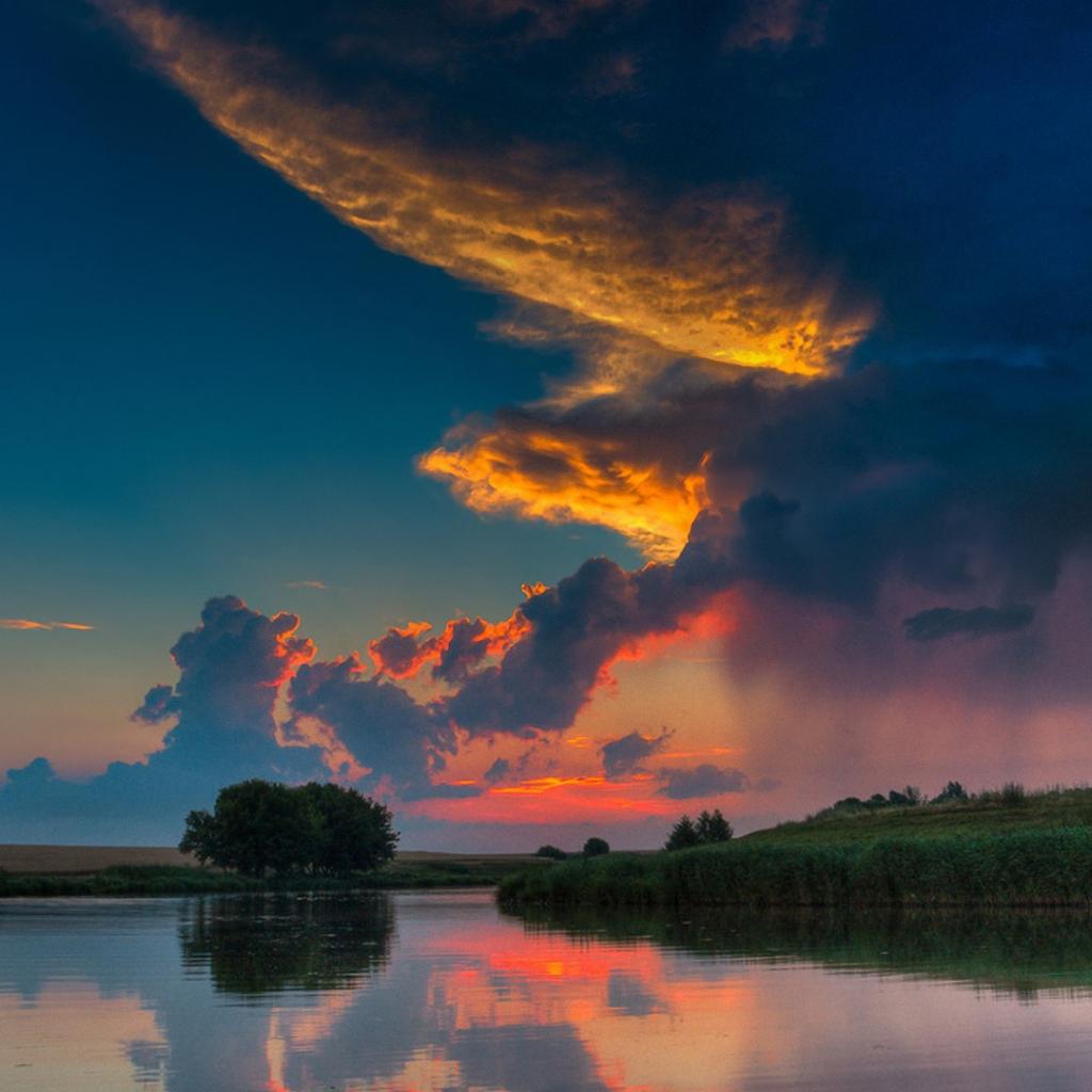 Обои Закат на фоне реки