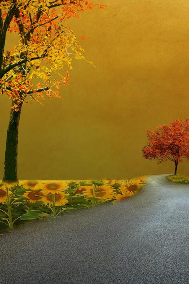 Обои Деревья, Дорога, Пейзаж, стиль