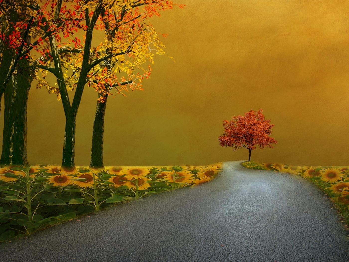 Обои Деревья, Дорога, Пейзаж, стиль