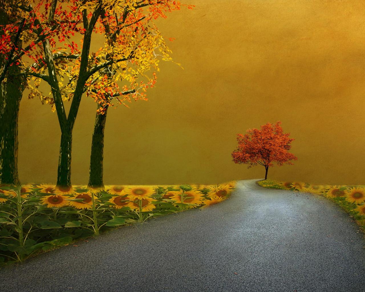 Обои Деревья, Дорога, Пейзаж, стиль