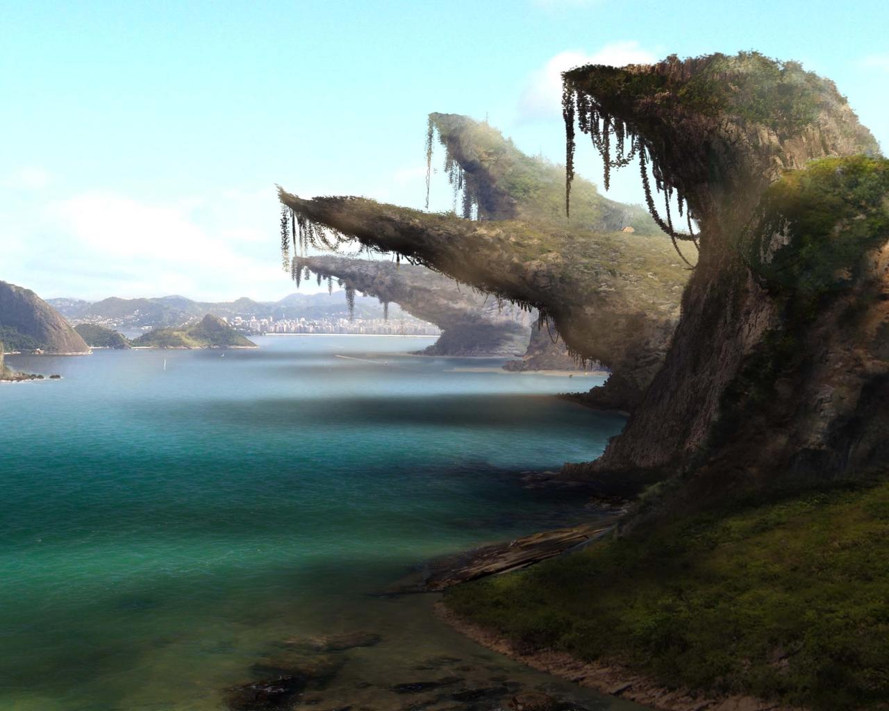 Обои Трава, Пейзаж, Скалы, Вода