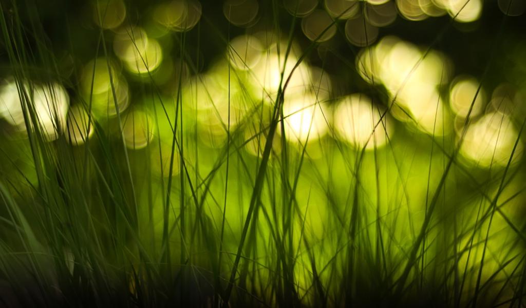 Обои Огни, Зеленая трава, Макро, Эффект боке