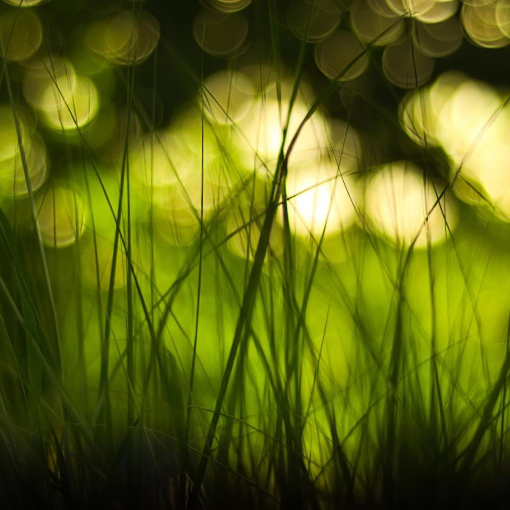 Обои Огни, Зеленая трава, Макро, Эффект боке