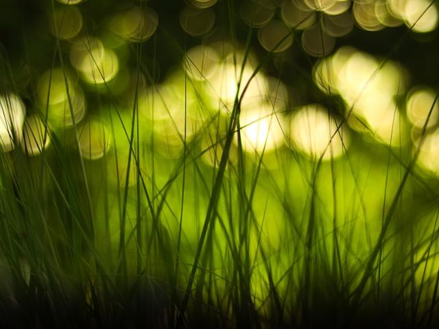 Обои Огни, Зеленая трава, Макро, Эффект боке