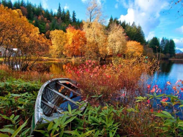 Обои Озеро, Лодка, Успокаивающие