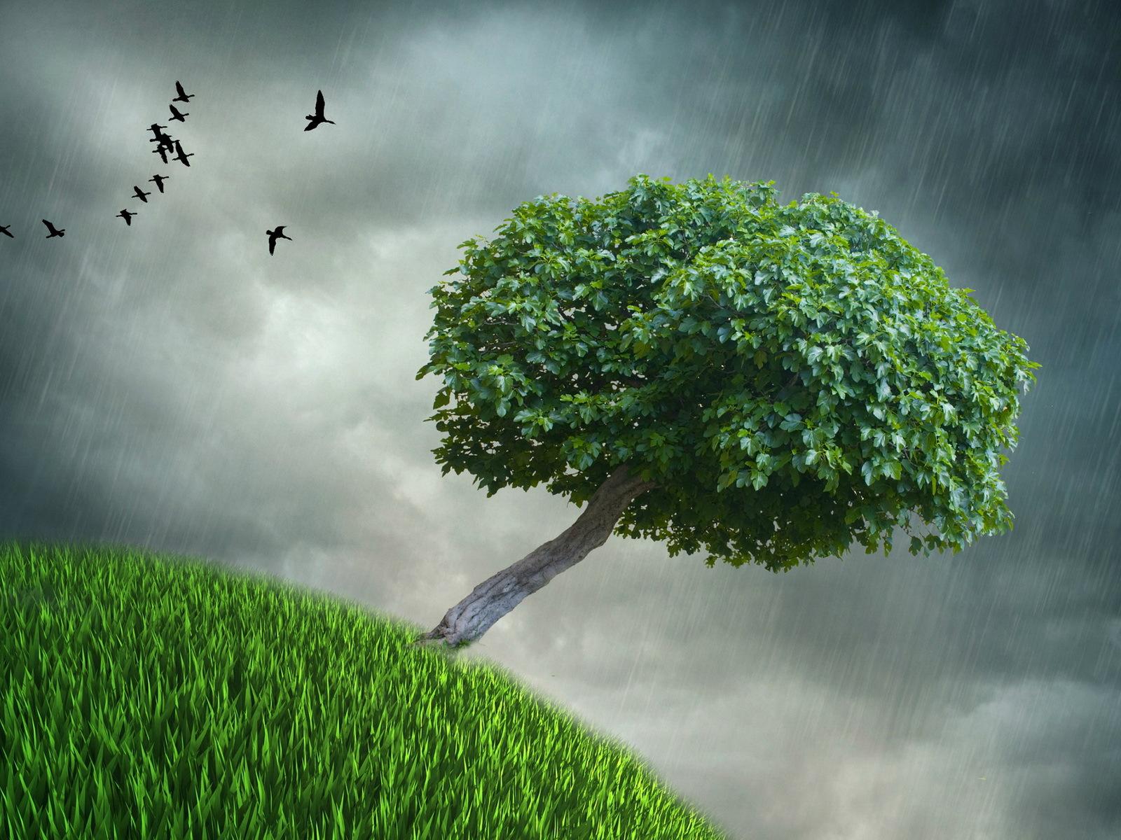 Обои Небо, Деревья, Зеленая трава, стиль