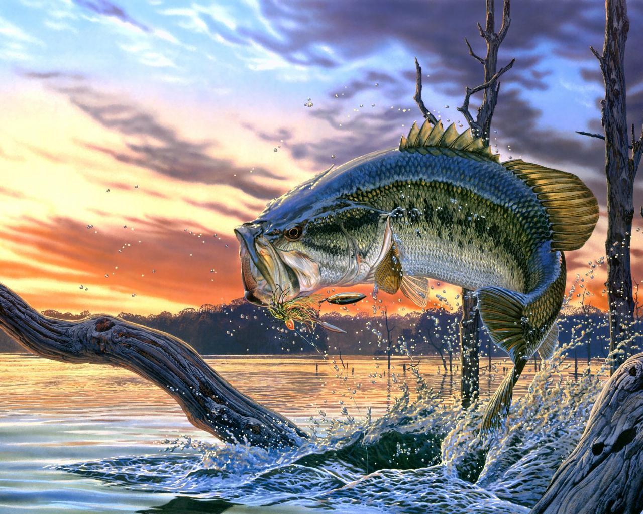 » Обои Небо, Деревья, Брызги, Рыба