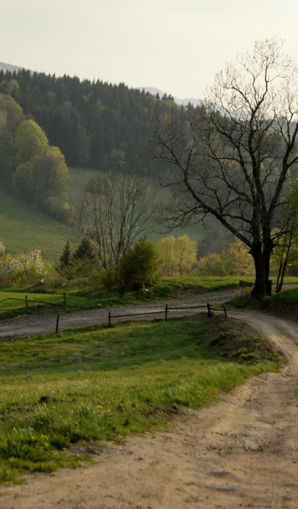 Обои Деревья, Дорога, Пейзаж, Зеленая трава