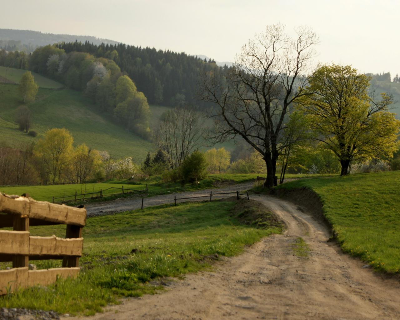 Обои Деревья, Дорога, Пейзаж, Зеленая трава