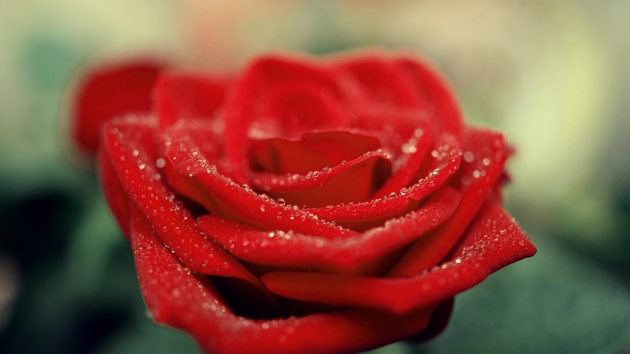 Обои Капли, Красная роза, Лепестки роз, Макро