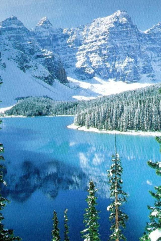 Обои Снег, Деревья, Заснеженные горы, Горное озеро