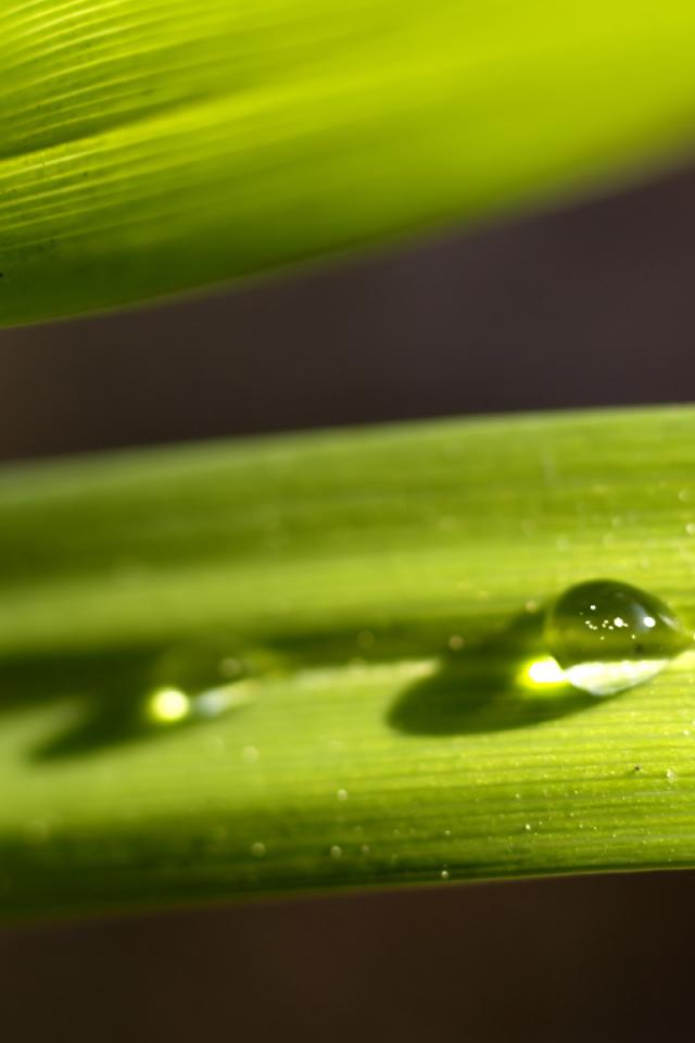 Обои Капли, Зеленая трава, Утро, Макро