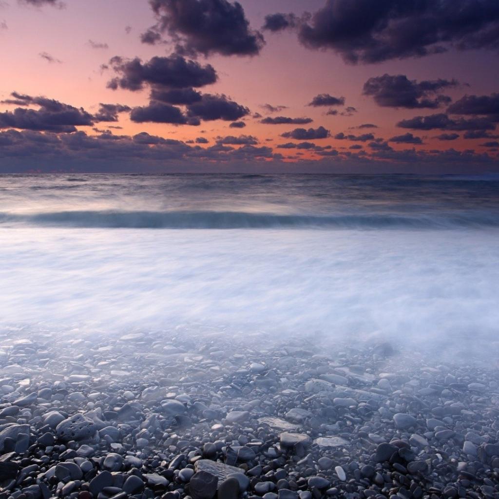 Обои Океан, Низкие облака, Розовые облака