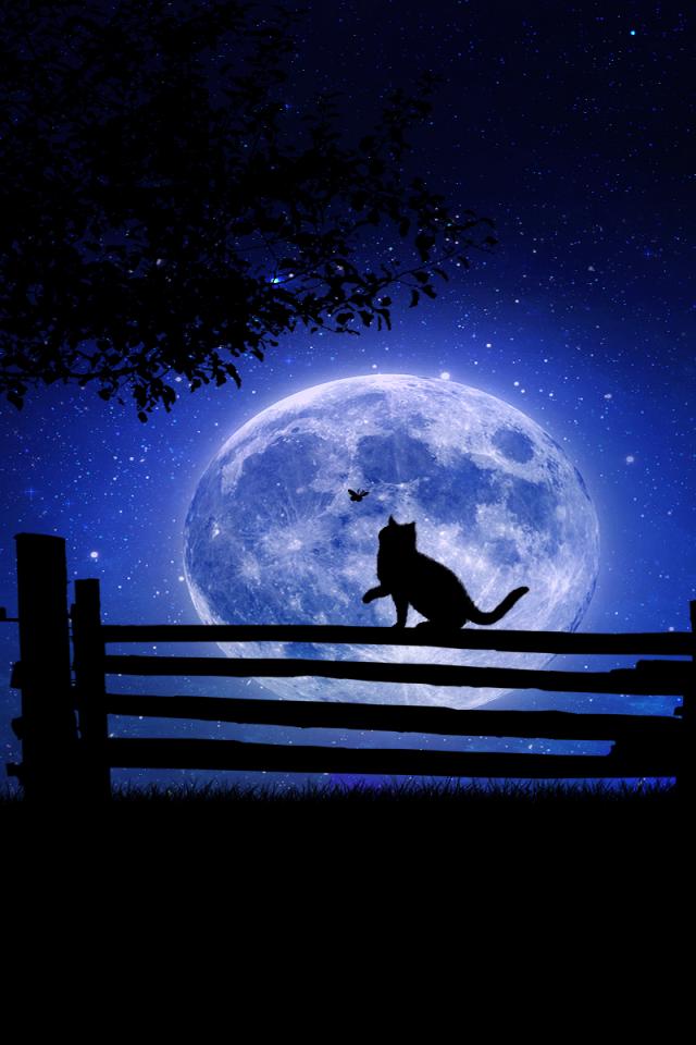Обои Деревья, Ночь, Луна