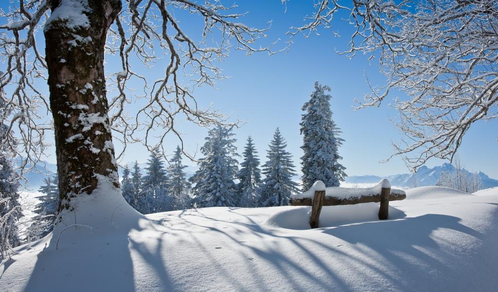 Обои Снег, Пейзаж, Заснеженное дерево