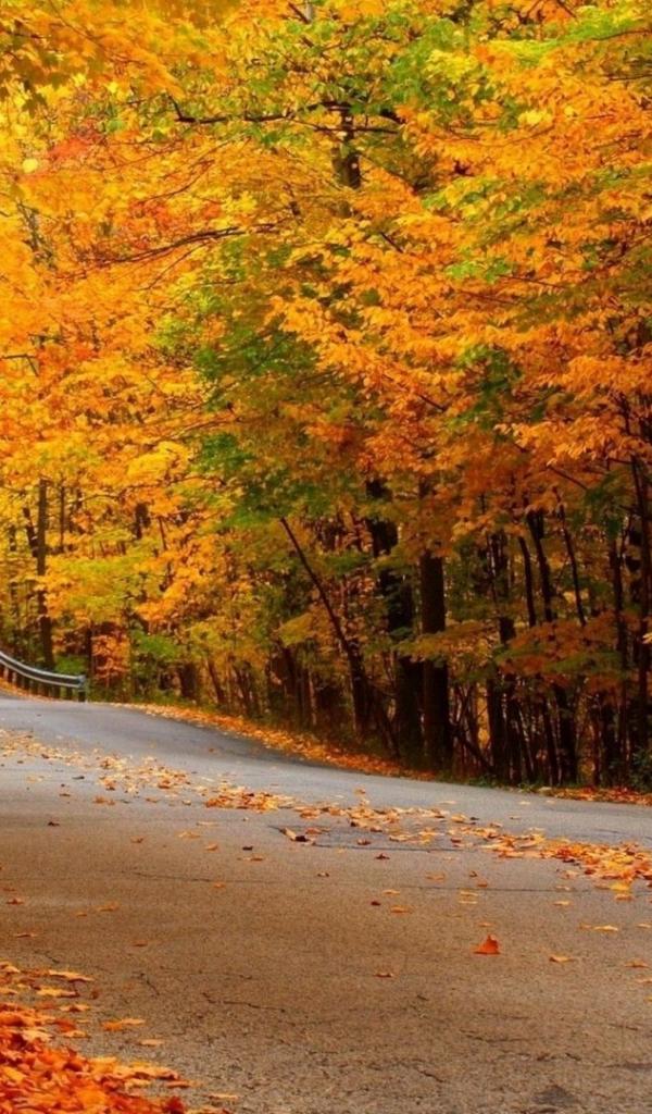 Обои Автомобильная дорога в осеннем лесу