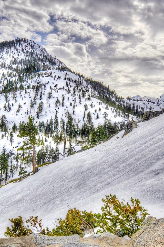 Обои Заснеженный лес в горах