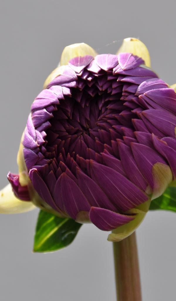 Обои Бутон большого фиолетового цветка на сером фоне