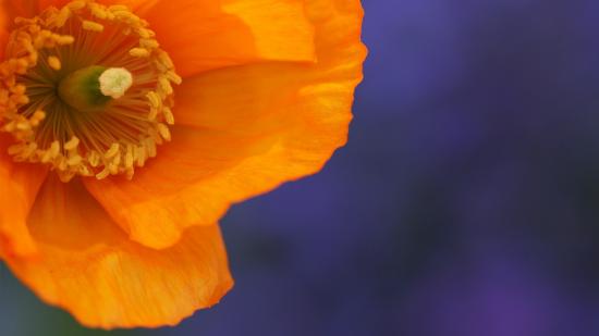 Обои Оранжевый цветок на голубом фоне