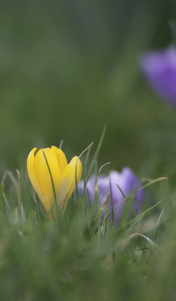 Обои Желтый и голубой цветок в зеленой траве