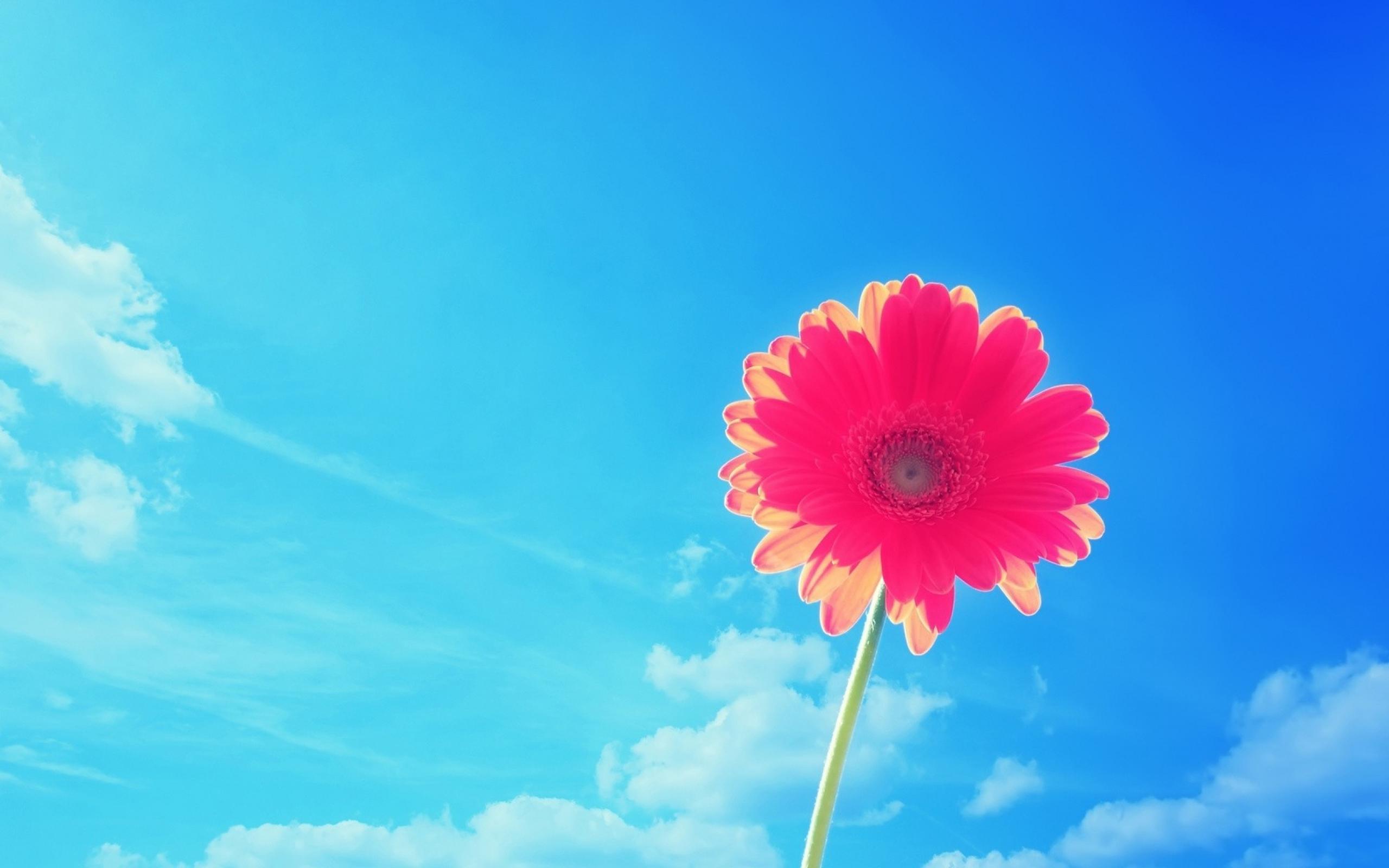 Обои Красивый розовый цветок ромашки на фоне голубого неба